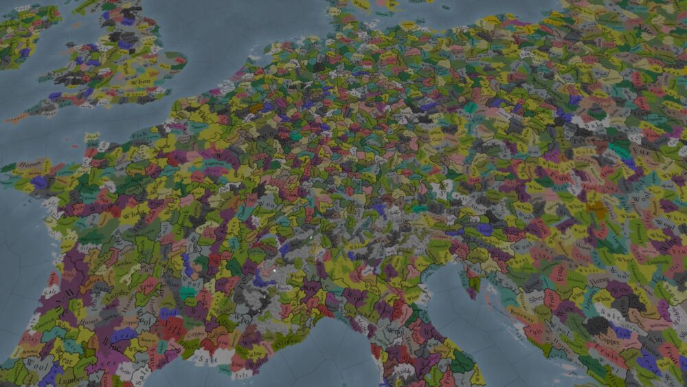 歴史的文脈多くのロケーションは、その歴史的遺産を反映した産出物で始まります。ワイン醸造で有名なロケーションは、EU5でもワインを産出する可能性が高く、銀や金が豊富な有名な鉱山があった地域は、ゲーム内でもその伝統を継続します。